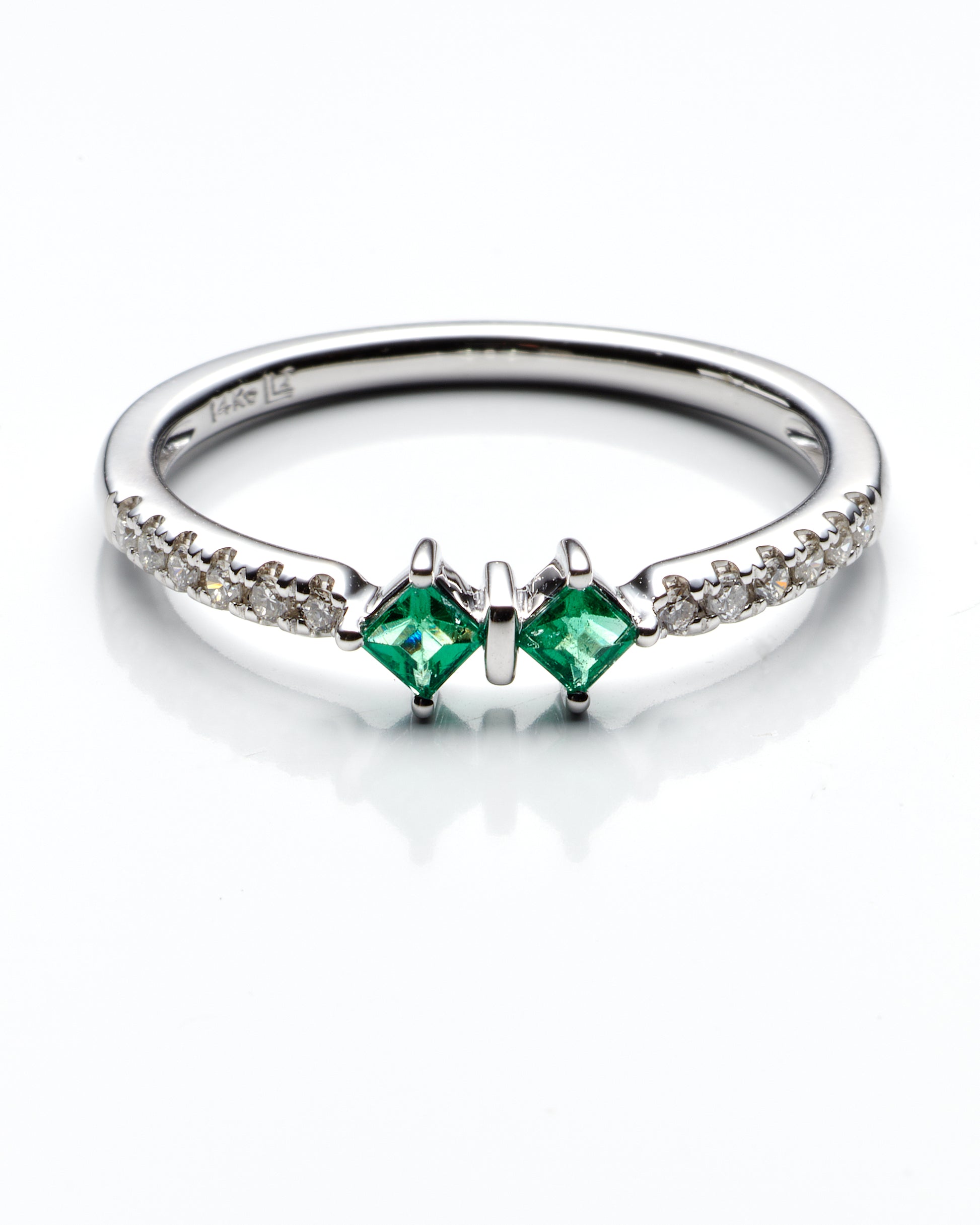 0.11Ctw Diamond 0.17Ctw Emerald 14K White Gold Ring Size 7 1.2Dwt