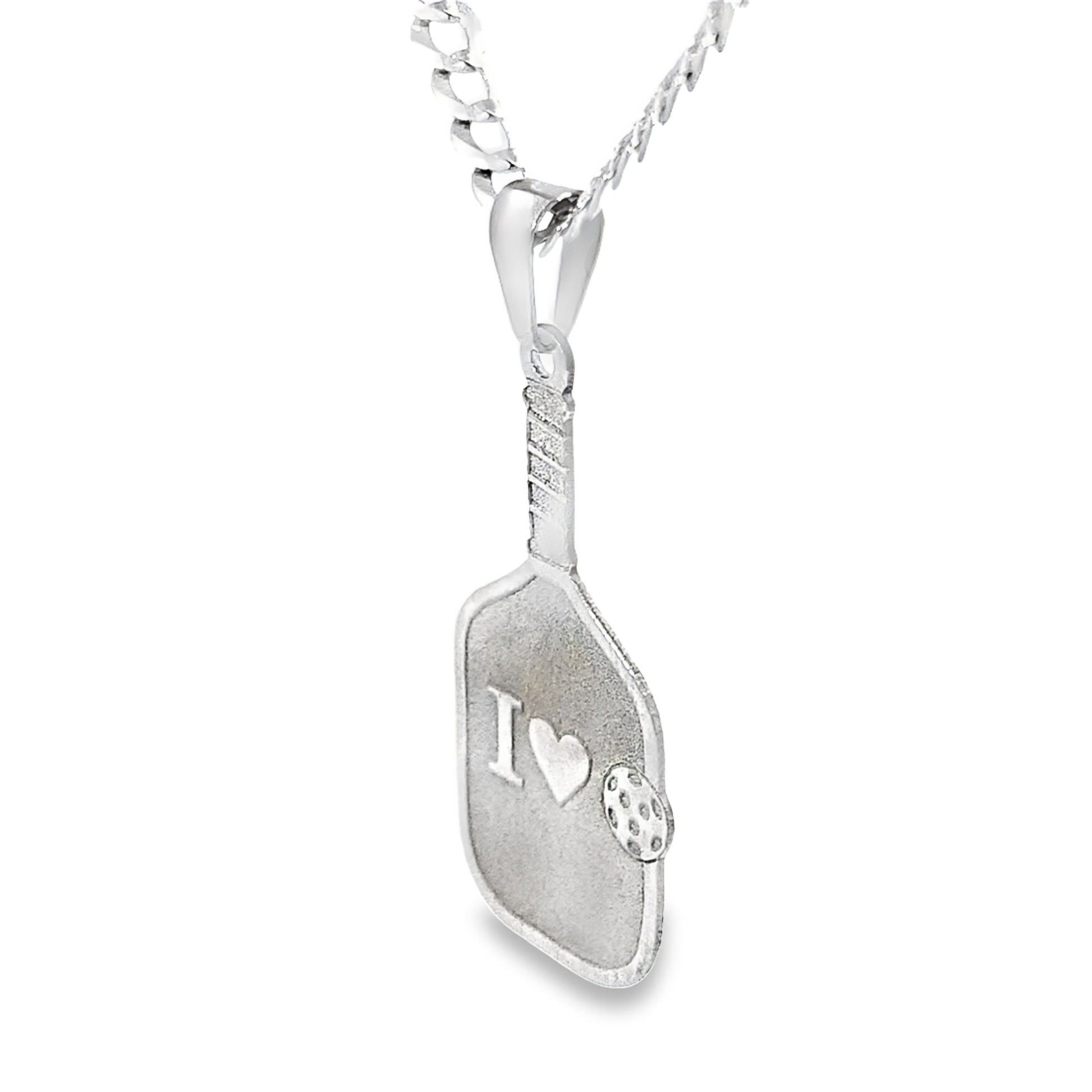 10K White Gold Pickleball Paddle Pendant 1.3Dwt