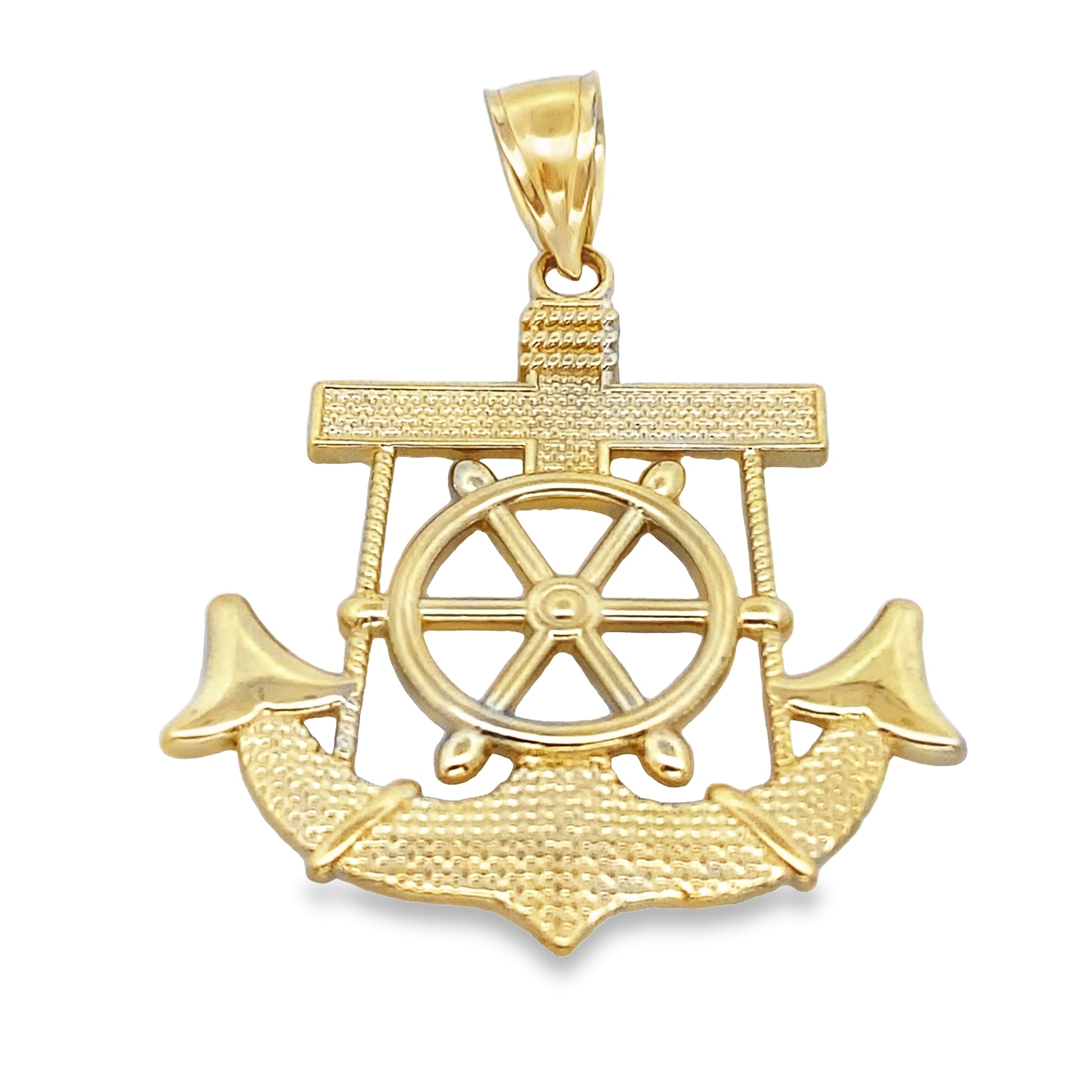 10K Yellow Gold Anchor & Ship Wheel Pendant 3.8Dwt