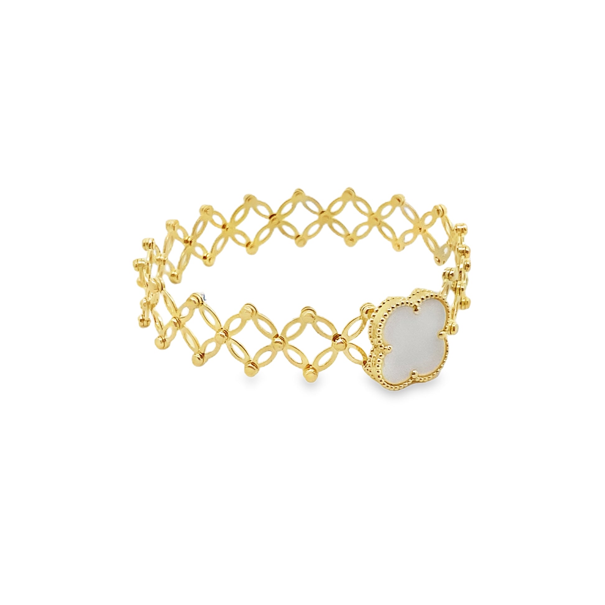 10K Yellow Gold White Flower Fashion Expandable Rings Size 7 8.8Dwt