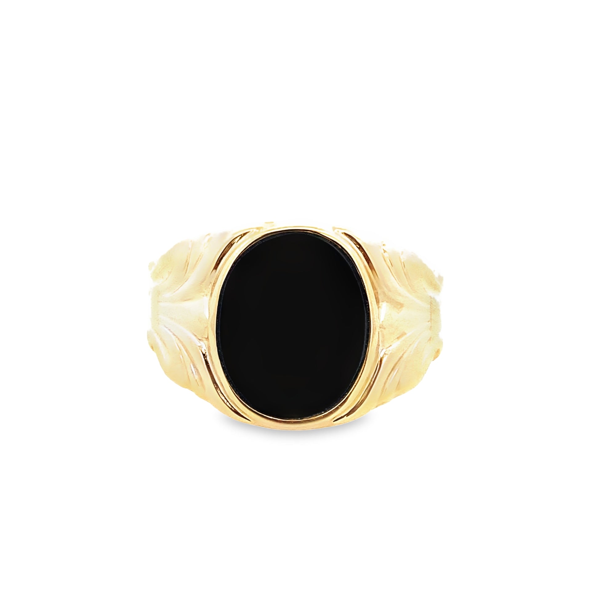 14K Yellow Gold Black Oval Stone Fashion Ring Mens Size 11 3.5Dwt