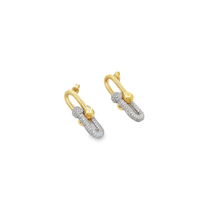 14K Yellow Gold Cz Stirrup Earrings 6.4Dwt