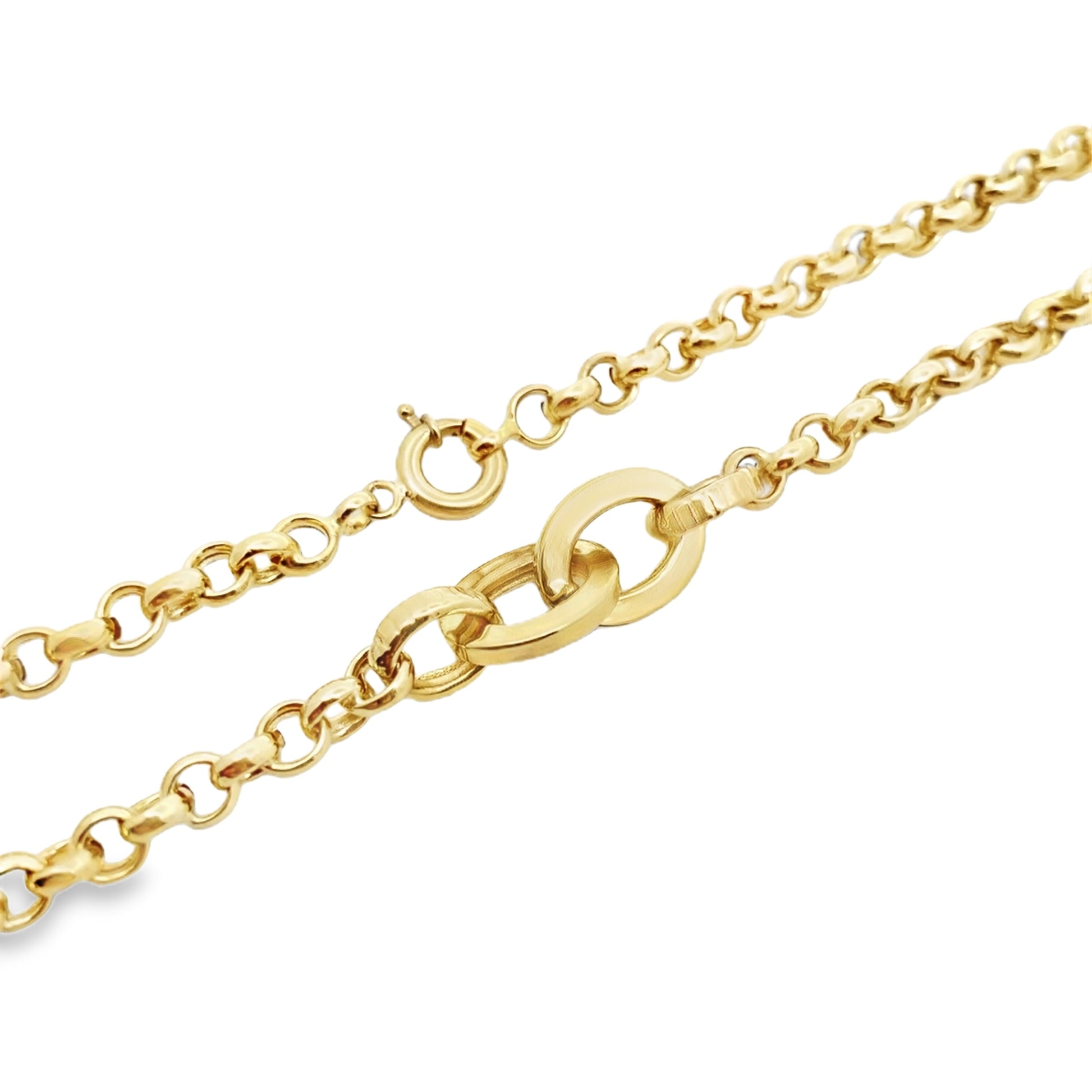 Crafted from the finest 14K yellow gold, this exquisite necklace boasts a delicate rolo link design that effortlessly drapes around your neck with luxurious sophistication. At 18 inches in length and weighing 6.1Dwt, it's the perfect addition to any outfit, adding a touch of elegance and refinement to any occasion. Elevate your style and make a statement with this timeless piece of art.