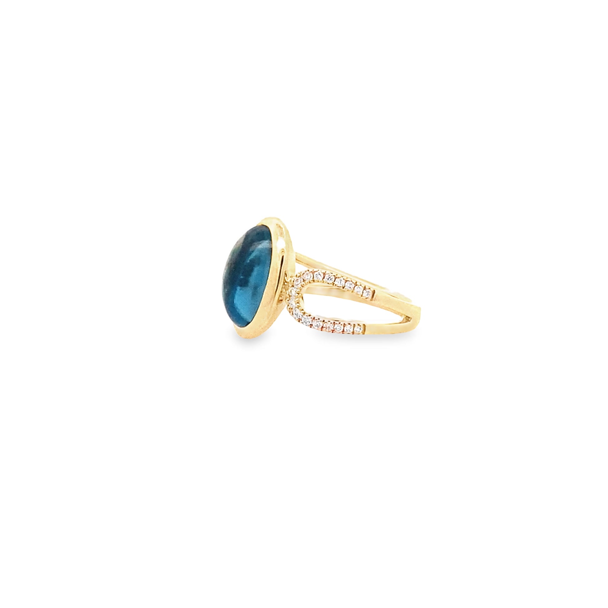 Capture the essence of spring with our exquisite 4.77 Lbob/0.17Ctw Bird 14K Yellow Gold London Blue Topaz & Dia Ring. Its delicate design and dazzling gemstones evoke the beauty and vitality of nature. Own a piece of art and radiate grace and elegance with our exclusive gold ring.
