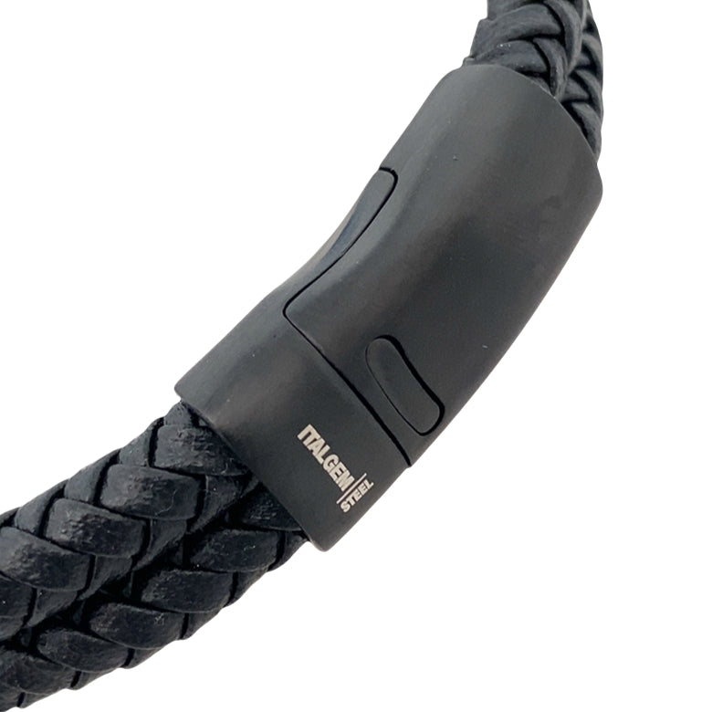 Black Ip Stainless Steel Clasp Design Black Leather 2 Strand Bracelet 8.5In