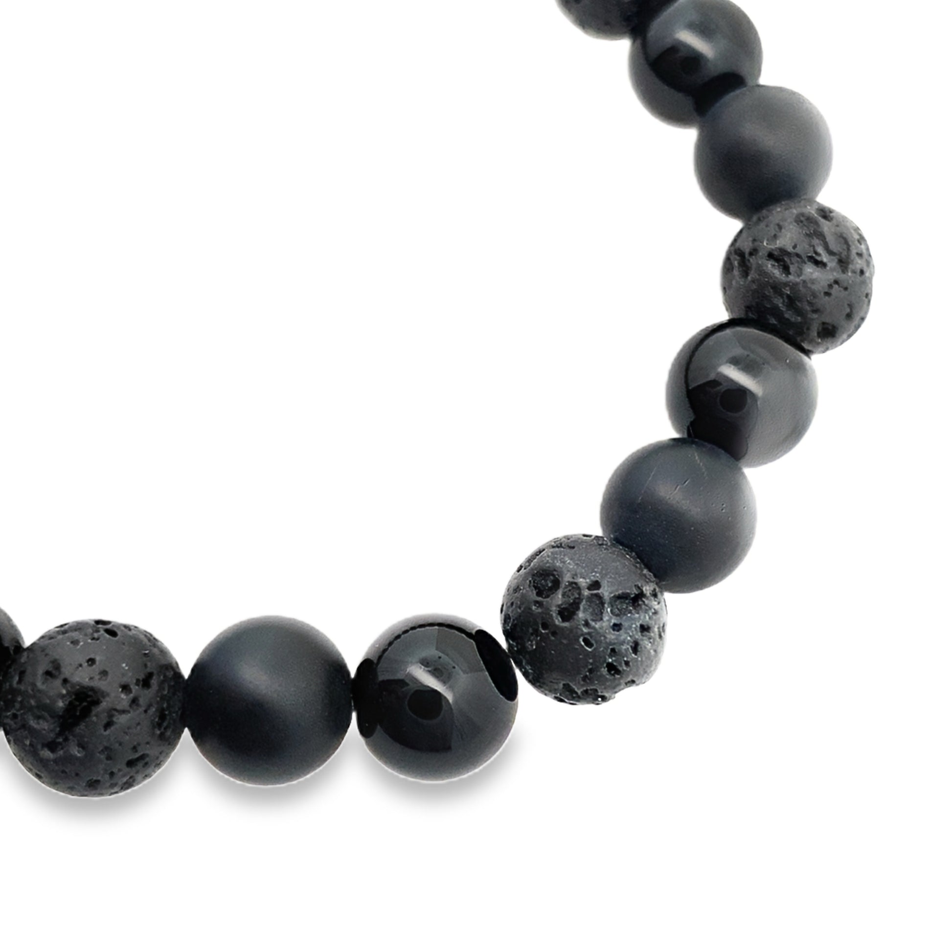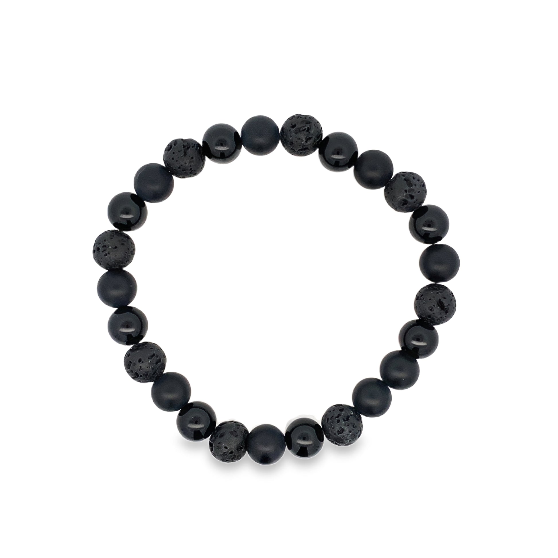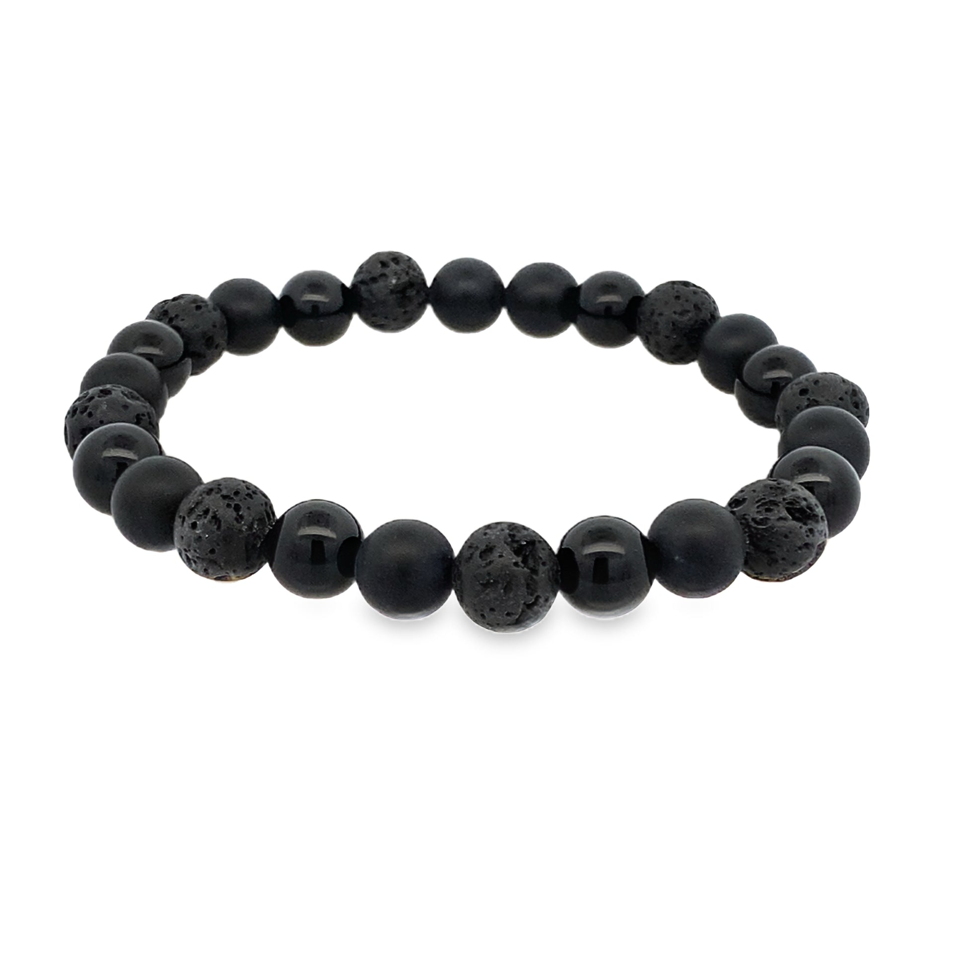 Black Matte Shiny Onyx Lava 8Mm 25Bead Bracelet 8.2In